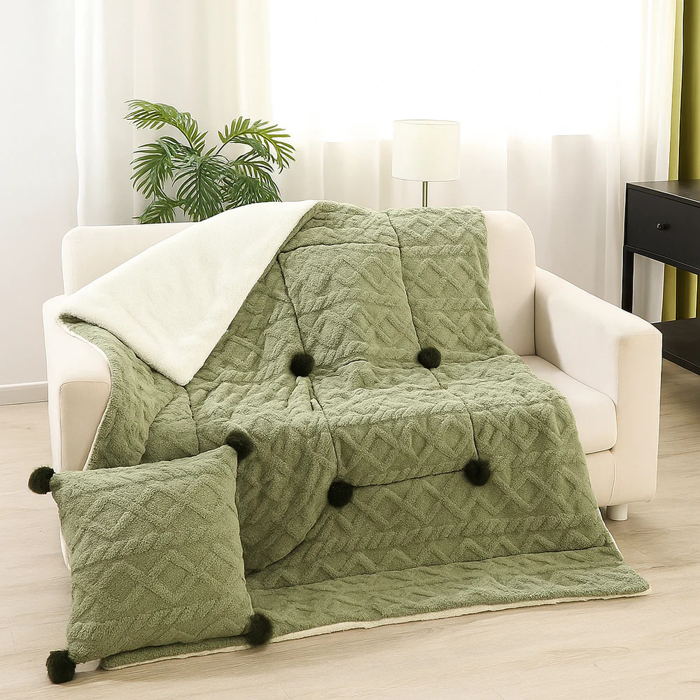 ✔ Plaid et coussin en 1 — pratique et élégant